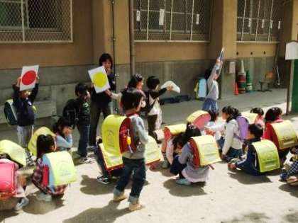 今日から15日まで、集団でお帰りをします。今日はその初日でしたので、1年生は集合の仕方から学びました。基本は、赤・黄・緑・青の4つのコースに分かれて下校します。学童に行く子どもたちにはピンクコースをつくり、集合した場所から学童の部屋に行くことにしています。下校時刻につきましては、学年だよりでお確かめください。