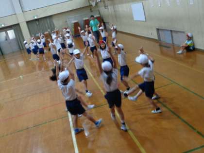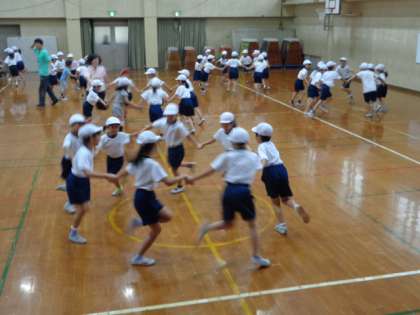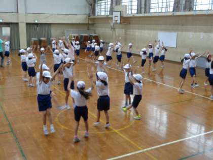 今日は,学年みんなで体育科『フォークダンス』を体育館で行いました。
