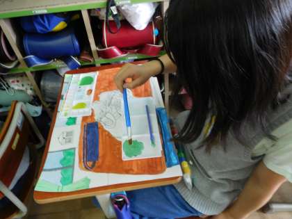 じっくりと見て靴を描いたり,靴の思い入れを絵に書いたりしてクラスで取り組んでいます。