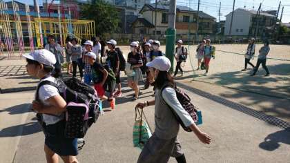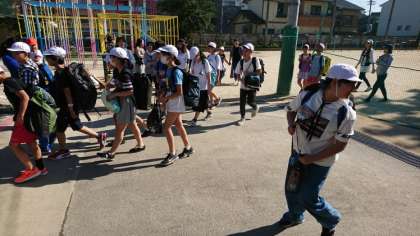 出発式を終えて,学校を出発していきました。