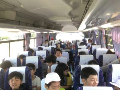 朝早く起きた児童も多かったと思うので,バスの中でほっと一息ついているようです。