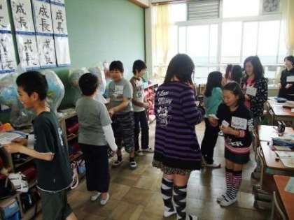 と友達とあいさつをし,作成した名刺を交換しました。名刺には自分の好きなスポーツの絵を描いたり,動物の絵を描いたり素敵なものが仕上がりました。もらった名刺は英語ノートに大事に貼り付けておきました。カードのやり取りを通して楽しんで英語で会話する様子が見られました。