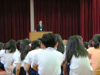 「今日は憲法月間のお話です。5月5日はこどもの日,4日はみどりの日。では,3日 は何の日でしたか?」という問いかけで朝会での校長先生の話が始まりました。