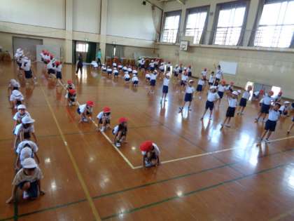 運動会のダンスの基本的な動きは全て練習できたので,今は体育館で隊形移動の練習をしています。