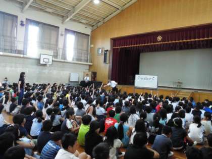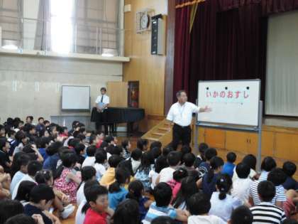 訓練では,体育館に集まって,警察の方から「いかのおすし」のお話を聞き,学校の内・外を問わず自分の身を守るためにできることを確認しました。