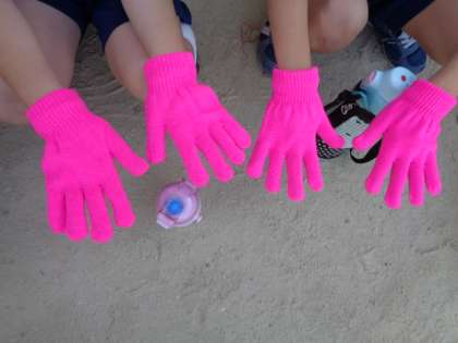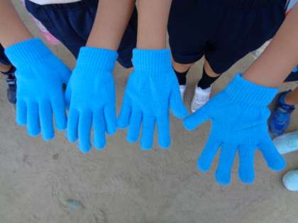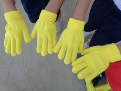 ダンス自体も隊型移動もできるようになってきましたので,今日からは両手にカラー軍手を着用して踊りました。