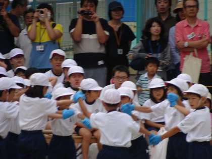 3色の手袋もはなやかですが,2年生のスマイルに見ているみんなも笑顔になってきます。