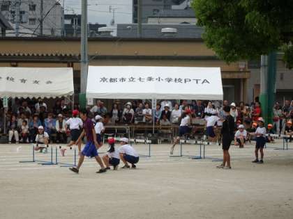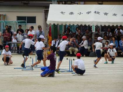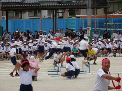 プログラムナンバー10 「50mハードル走」障害物走5年生です。