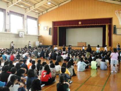 その後に,「小学生書写硬筆展」や「アイデア展」「子ども美術展」・・・等の表彰を行いました。たくさんの子どもたちが,入選・佳作となり,全校の子どもたちから祝福してもらいました。他の子どもたちの励みにもなればと思います。