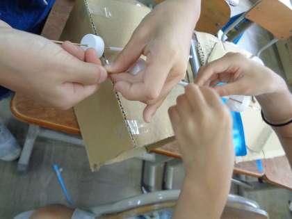 今,生活科『あそんで ためして くふうして』では,動くおもちゃ作りの活動をしています。