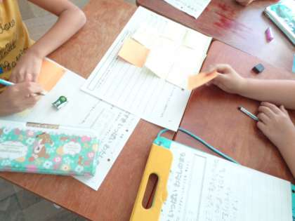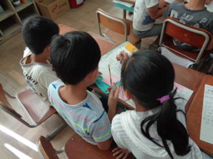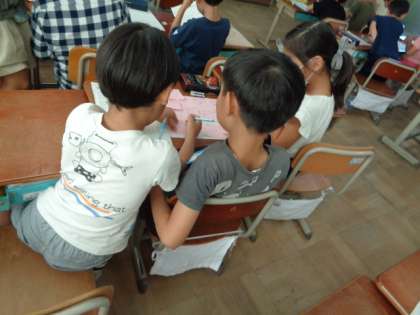 なかなか話をしたことのない子が集まったチームもいたようですが,それぞれのチームで,インタビューをしたいことを相談しながら決めていました。