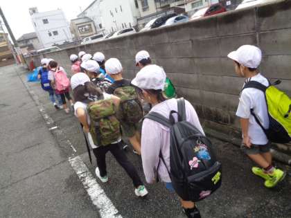 子どもたちは諸注意を聞いてから,交通マナーをきちんと守って駅へ向かいました。