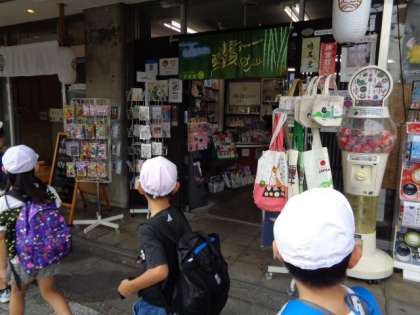嵐山へ着いてしばらく歩くと,子どもたちは「お土産屋さんが多いなあ。」とつぶやいていました。