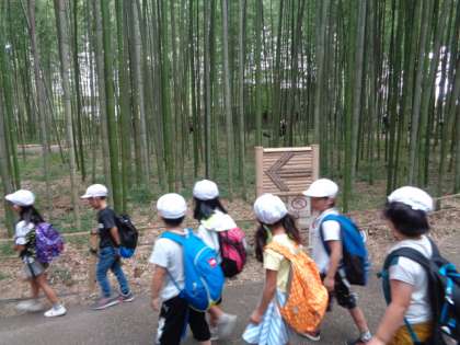 歩きながら「『ふきのとう』の竹藪だね。」「すっごく高いなあ。」「かぐや姫がいそう。」などと,子どもたちの楽しい会話が聞こえてきました。