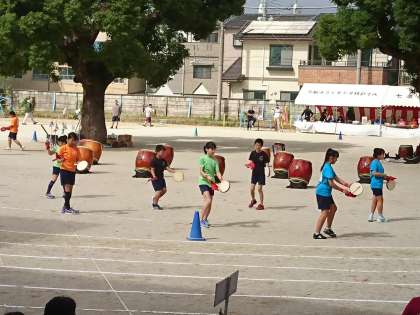 午後の最初は,部活動「和太鼓」の演奏を披露させていただきました。