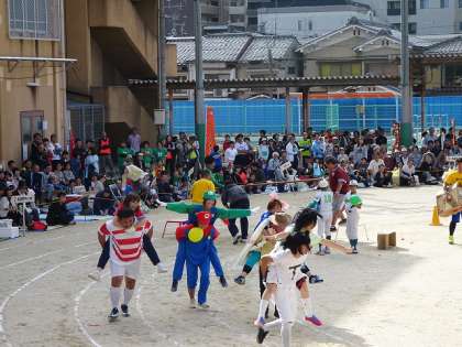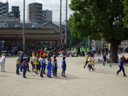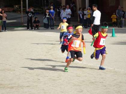 午後の後半もたくさんの競技がありました。愛情測定,ボール送りリレー,班対抗リレー,綱引き,リレーの決勝などです。それぞれの競技に,気持ちのよい汗をかいておられました。リレーの決勝は,白熱しており,大きな歓声が応援席から湧き上がってきました。