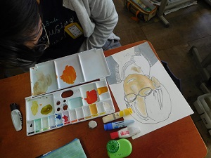 少しの量の違いで横の友だちと違う色が出来て,色の調整をしながら塗りました。