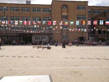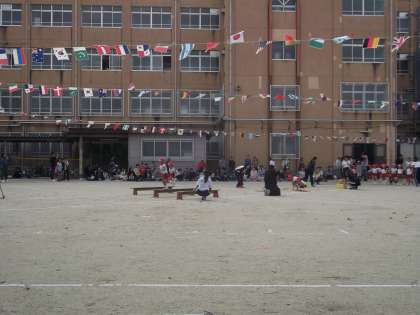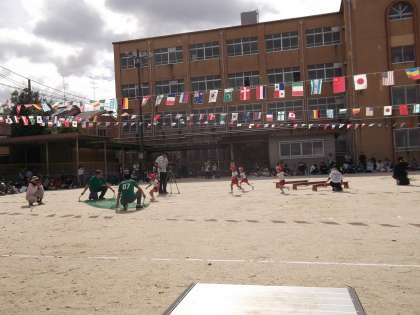 ボールを運んで,輪っかをくぐって,平均台を渡って,網をくぐりぬけます。