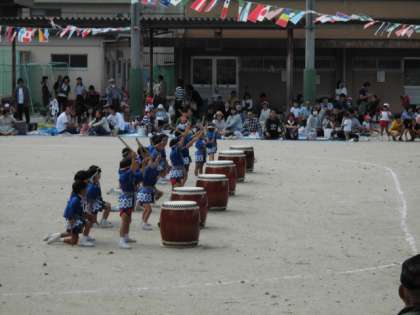 午後の部の一番は,年長組の演技『和太鼓』です。リズミカルで力強い音で始まりました。