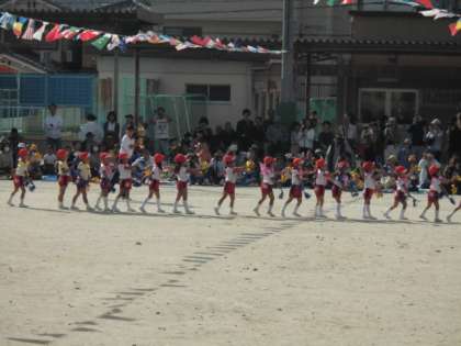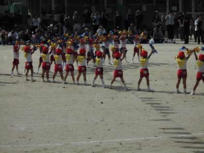リズムに合わせて踊り,いろいろな隊形移動もしっかりと覚えて移動していました。