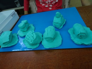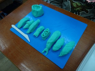 図画工作科の学習で粘土を使って,ごちそうを作りました。