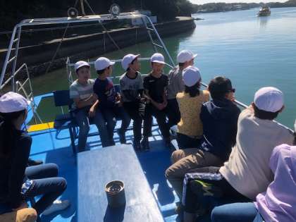 賢島に到着しました。船に乗り,みさきの家を目指します。晴れて,英虞湾も穏やかな様子です。