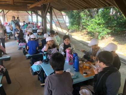 朝早くから,作っていただいたお弁当。お家の人に感謝しながら,お弁当を食べてにっこりとした表情がすてきです。