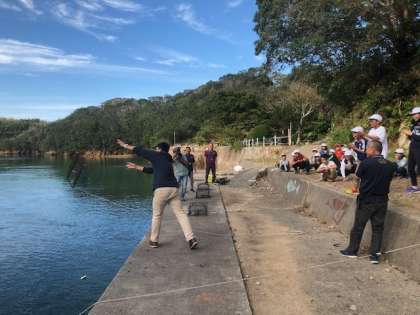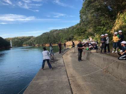 第1炊飯場そばの,深谷水道にしかけます。明日,どんなものがかかっているか引き上げるのが楽しみです。