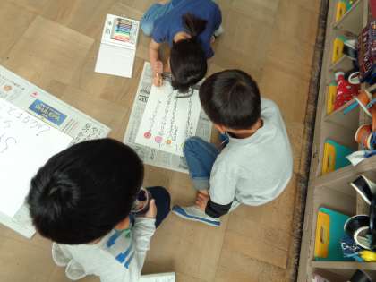 遊びだけでなく,看板やルール説明の紙も作っています。