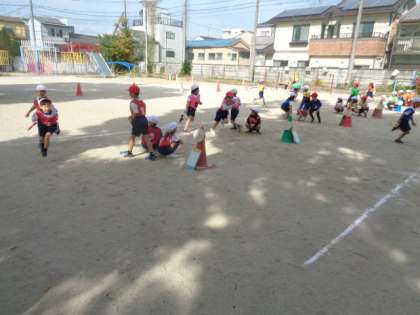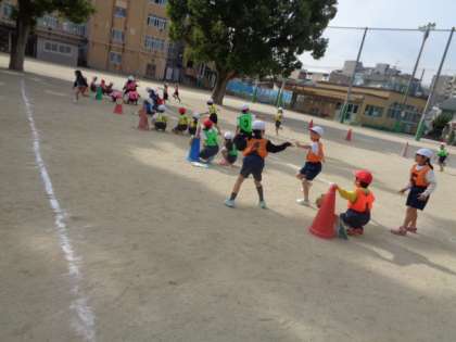 今日は体育科『リレーあそび』で「おりかえしリレー」の仕方を知って,相手チームと競走することを楽しみました。
