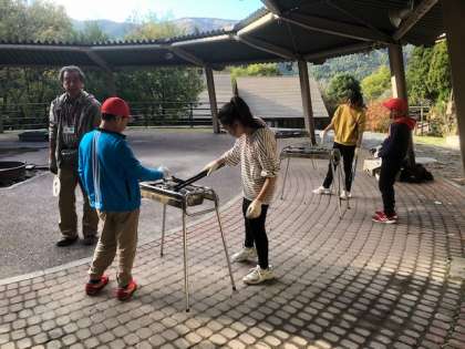 子どもたちは,自分がさばいた魚を『バーベキューコンロ』で焼きました。