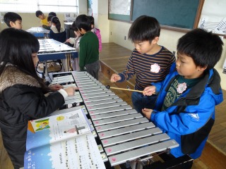 けんばんとは違う,優しく響く音色を楽しむ子どもたちでした。