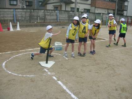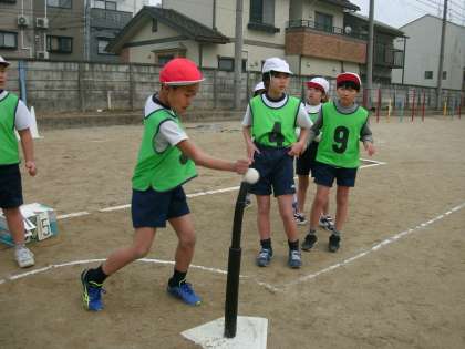 初めは,ベースボール型のスポーツになじみのない子どもたちから,「ルールがわからない。」だとか,「ボールがこわい。」などという声が出ていましたが,いざ実際に体験してみると…。楽しそうにプレーする姿がたくさん見られました。