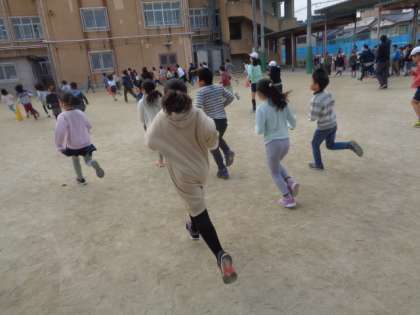持久走大会に向けて,中間休みを使って5分間のランニングを行っています。