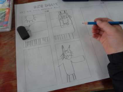 今日は,実際の作品づくりに向けて,窓を開いて何が見えると楽しい作品になるかを考えて,イメージスケッチをしました。
