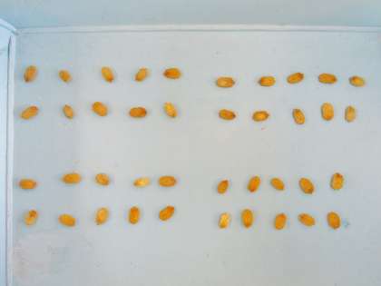 の40こずつに分けました。さて,どちらの方が多くめが出るでしょう。ぬらした方が,からがやわらかくなって,めが出やすいでしょうか。それとも,ぬらすとたねは息がしにくくなって,めが出ないでしょうか。