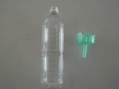 ぺっとぼとる ようきに くるくると まわして とりつけます。とりつけるまえに ようきの なかに おみずを いれます。