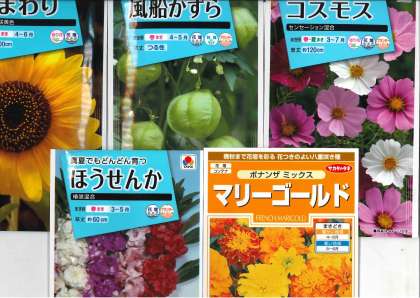 ひまわり・ふうせんかずら・こすもす・ほうせんか・まりいどおるどの たねを かだんで そだてようと おもいます。