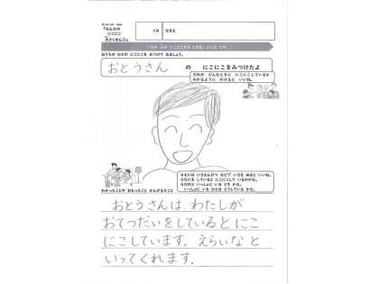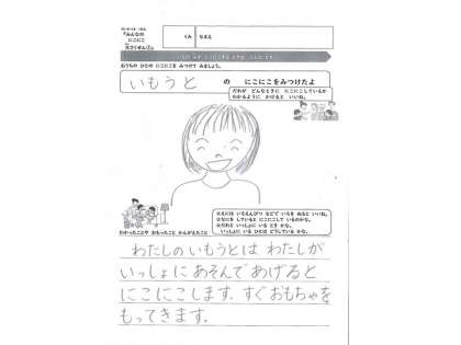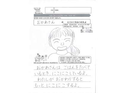 おうちの ひとが にこにこする ときは どんなときかを みつけてみましょう。