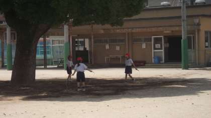 今日は天気も晴れ,運動場で体育ができました。