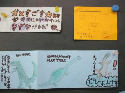 子どもたちは,筆者や題名,あらすじ,心に残った言葉を書いたり,登場人物をイラストで描いたりしていました。文字の大きさや形,色も変えて,デザインも工夫していました。