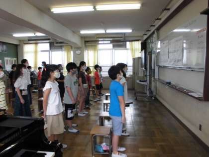 歌声につられ音楽室をのぞくと,5年生が「夢の世界を」を歌っていました。