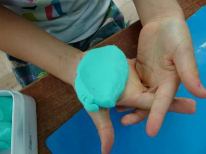 握ってたり,指のあとをつけたり,薄く伸ばしたりして,色々な形づくりをしました。