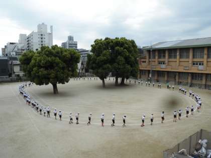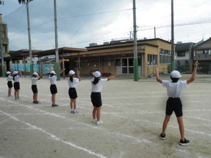 今日は,運動場でフォークダンスをしました。子ども達は,それぞれのクラスで練習した細かなステップを思い出しながら身体を大きく動かして踊っていました。