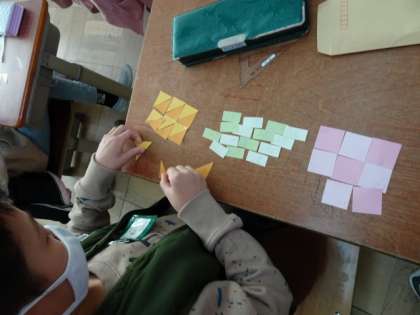 色々な模様ができることを楽しみながら,紙を並べていました。
