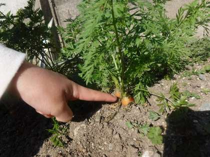 土からぴょこっとミニ人参が頭を出していたり,葱がぐんぐん伸びてきたりしているのを見て,子ども達は大喜びでした。