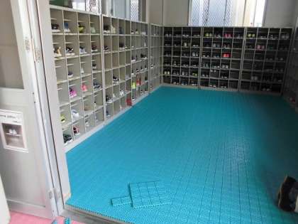 高学年と1年生の一部が使っている靴箱。
