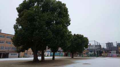 京都でも朝から雪が降り始め,運動場をうっすら白く覆いました。
