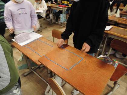 今日は,数え棒を18本使って,さまざまな形の長方形を作りました。見つけた形から,「全部で8通りある。」「縦で使った本数と横で使った本数を足すと,どれも9本になる。」「他にも,もっときまりがありそう。」と,気づいたことを交流していました。