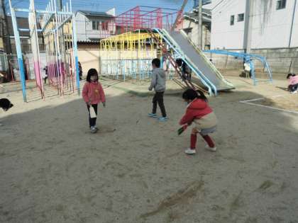 ふゆあそびはいろいろあります。羽根つきは子どもたちにとって本当に難しいです。でも,みんなとてもやりたくてやりたくて,一生懸命頑張っています。